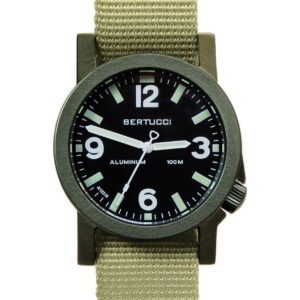 DESCRIPTION The A-6A debuts all new Experior case architecture in light weight and durable anodized aluminum. This innovative U.S. Patented design is clean and functional. Creating a modern classic feel that can only come from Bertucci. Versatile, professional styling. Well suited for life's day to day endeavors. SPECIFICATIONS Case Diameter: 40 mm Dial Color: Black…