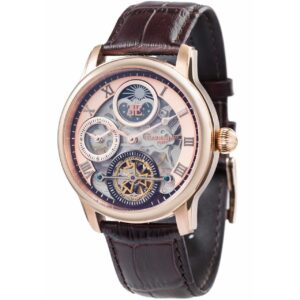 DESCRIPTION The Longitude Meridian shows off the innate intricacy and elegance of the Automatic Movement that displays Day and Night, Dual Time, and an exposed seconds turning flywheel at the 6 o'clock position. An exhibition see-through caseback allows the wearer to enjoy a view of the automatic self-winding rotor that powers the mechanics of the…