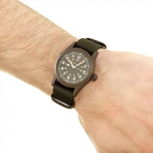 BRAND Hamilton CASE WIDTH 38.00 CASE DEPTH 9.00 MODEL NAME Khaki Field MPN H69449961 EAN 7640167049394 WATER RESISTANCE 50 metres GENDER Gents CASE MATERIAL Stainless Steel MOVEMENT Mechanical DIAL COLOUR Khaki STRAP TYPE Fabric Strap ANALOGUE/DIGITAL Analogue CASE SHAPE Circle GLASS Sapphire WARRANTY 2 years