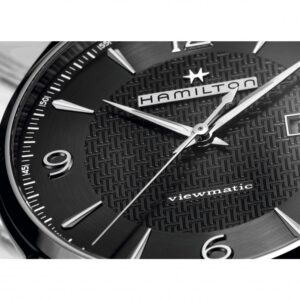 BRAND Hamilton CASE WIDTH 40.00 CASE DEPTH 11.00 MODEL NAME Jazzmaster Viewmatic MPN H32515135 EAN 7640127754900 WATER RESISTANCE 50 metres GENDER Gents CASE MATERIAL Stainless Steel MOVEMENT Automatic DIAL COLOUR Black STRAP TYPE Metal bracelet ANALOGUE/DIGITAL Analogue CASE SHAPE Circle GLASS Sapphire STRAP COLOUR Silver WARRANTY 2 years