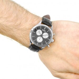BRAND Hugo Boss CASE WIDTH 40.00 CASE DEPTH 8.00 MODEL NAME Corporal MPN 1513638 EAN 7613272296465 WATER RESISTANCE 30 metres GENDER Gents CASE MATERIAL Stainless Steel MOVEMENT Quartz DIAL COLOUR Black STRAP TYPE Leather strap ANALOGUE/DIGITAL Analogue CASE SHAPE Circle STRAP COLOUR Black WARRANTY 2 years