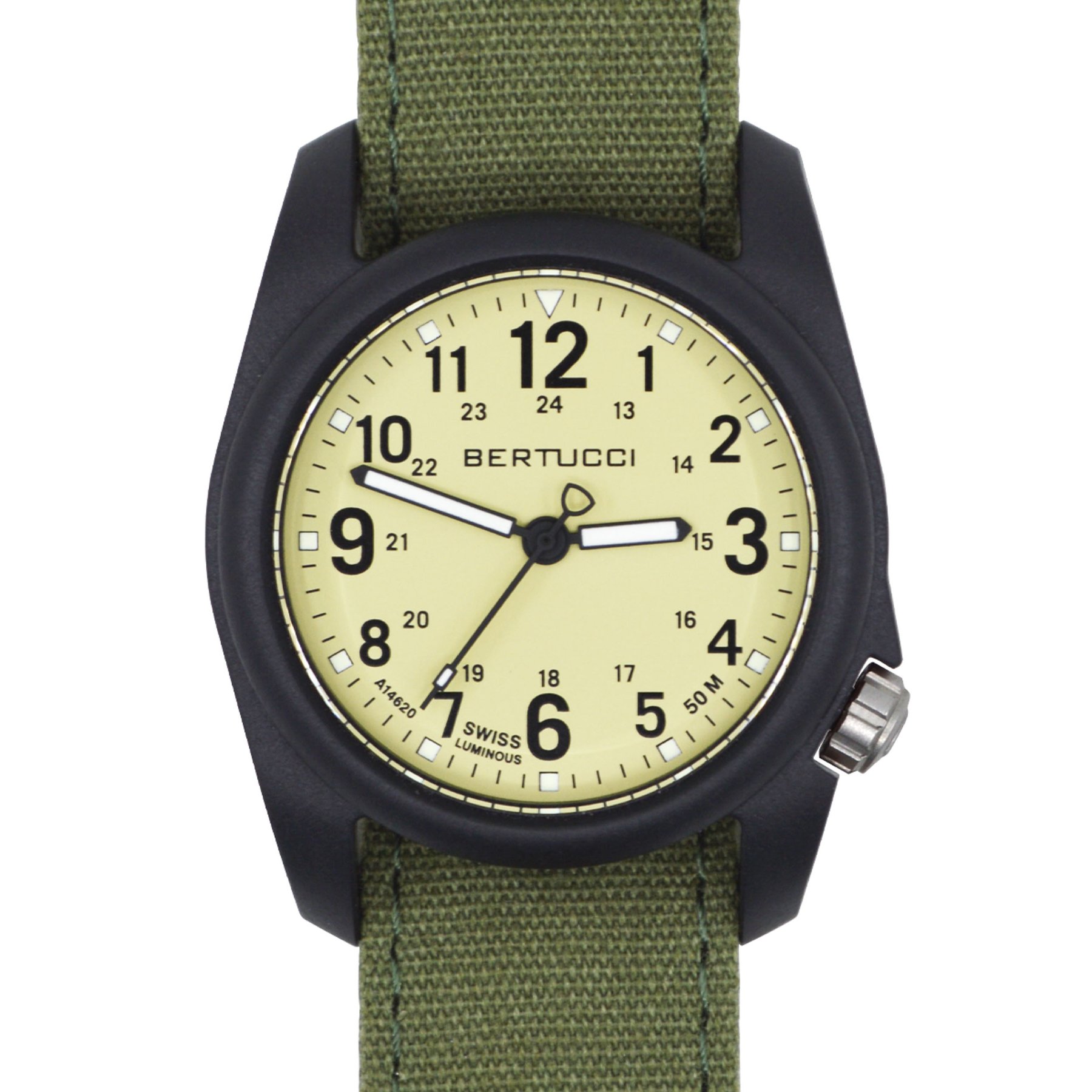 Extreme Comfort & Durability in a clean classic design. The DX3® CANVAS™ is built around a U.S. Patented 40 mm case made from fiber reinforced polycarbonate for durability and light weight. It’s equipped with the all-new all-cotton Comfort Canvas™ band that is smooth to the touch, cool and dry. The rugged, tight weave all-cotton canvas features double layer edge stitching, stainless steel buckle, canvas keeper and long wearing embroidered holes. Over time, the natural cotton canvas will develop an attractive and distinctive patina. One size fits all.