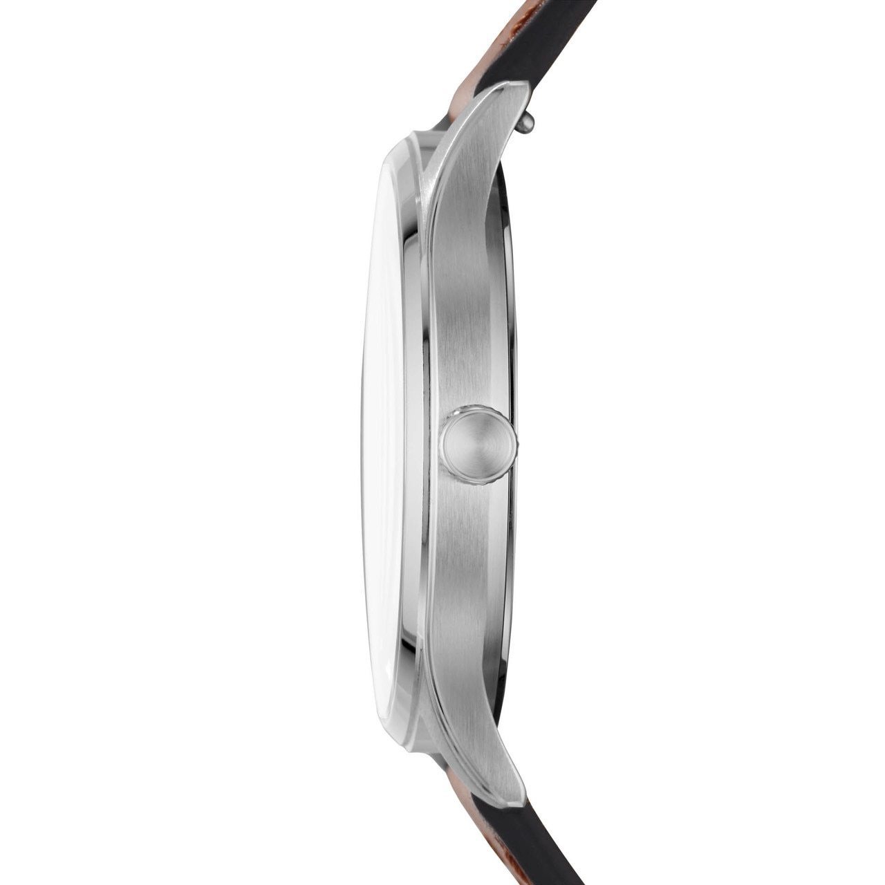 This 42mm Forrester features a black satin dial with Arabic numeral indices, three-hand date movement and a luggage leather strap. Defined by its traditional case silhouette and full Arabic dial, Forrester is a bonafide field watch for every setting.