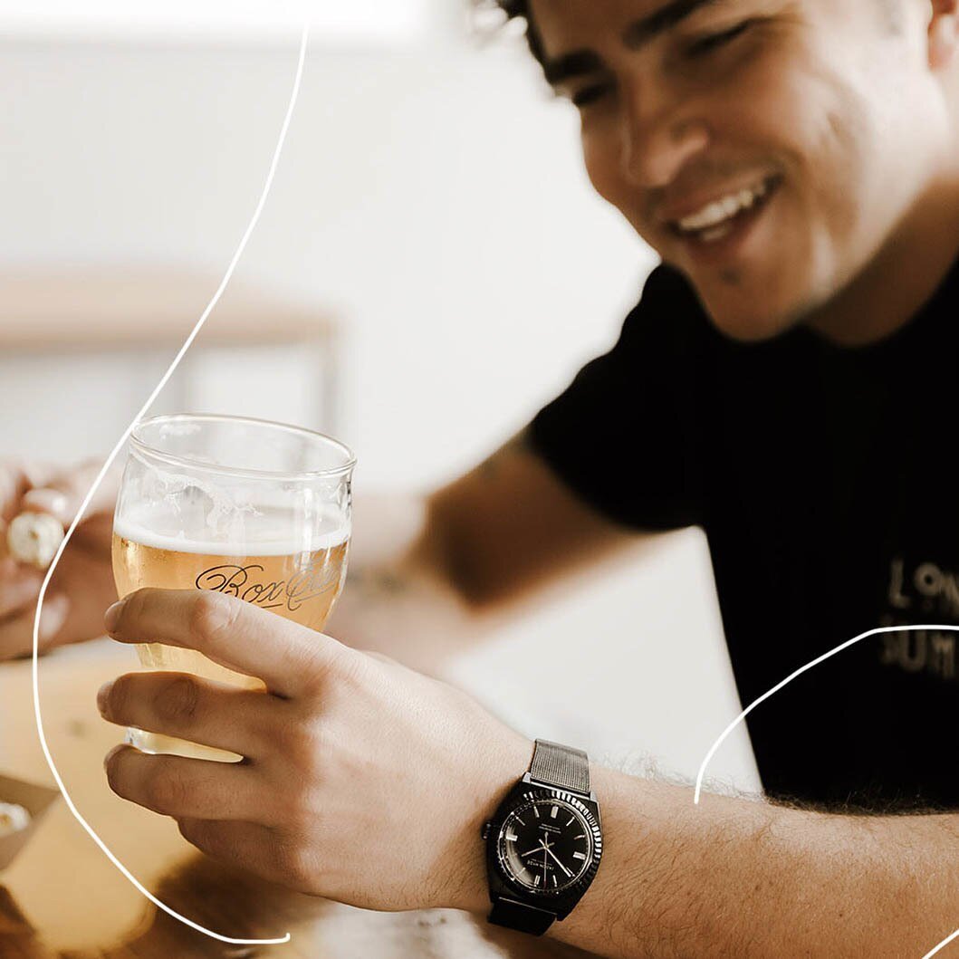 UNO has been designed for timeless elegance, and goes with all styles and ages. The 40mm watch is available in silver, black or rose gold and features their signature Vegan Strap. With sophisticated details such as red arrow, applied index and luminescent dot, the #UNO is a great addition to any wardrobe.