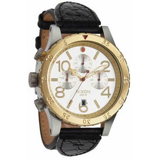 Nixon 48-20 Chrono Leather Silver/Gold