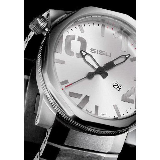 The BRAVADO Q2 features a 3-hand Swiss-made quartz movement with date and a ticking second hand. The dial is clean in design and stunningly unique. The bold case is of impact-forged, surgical grade 316L stainless steel and precision machine sculpted. The screw-down crown is placed in our signature 10 o'clock position for anatomical ease and distinction, while a wide NBR rubber strap or a sculpted stainless steel bracelet combines elegance and comfort. This SISU timepiece is shielded by an anti-reflective hardened mineral crystal lens.