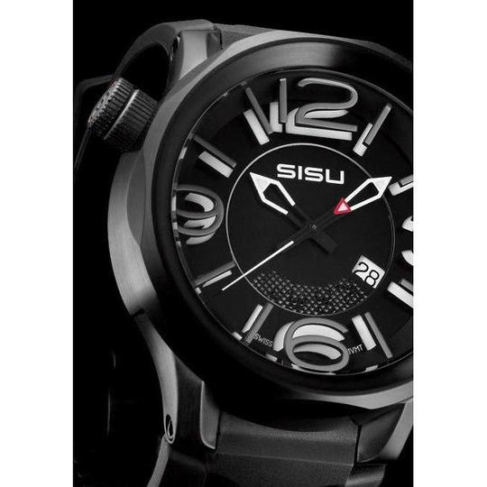 The GUARDIAN Q4-50 features features a 3-hand Swiss-made quartz movement with date and a ticking second hand. The Eclipse dial with it's layered design is quite unique. The bold case is of impact-forged, surgical grade 316L stainless steel and precision machine sculpted. The screw-down crown is placed in our signature 10 o'clock position for anatomical ease and distinction, while a wide NBR rubber strap or an aggressive sculpted stainless steel bracelet combines elegance and comfort. This SISU timepiece is shielded by an anti-reflective hardened mineral crystal lens..