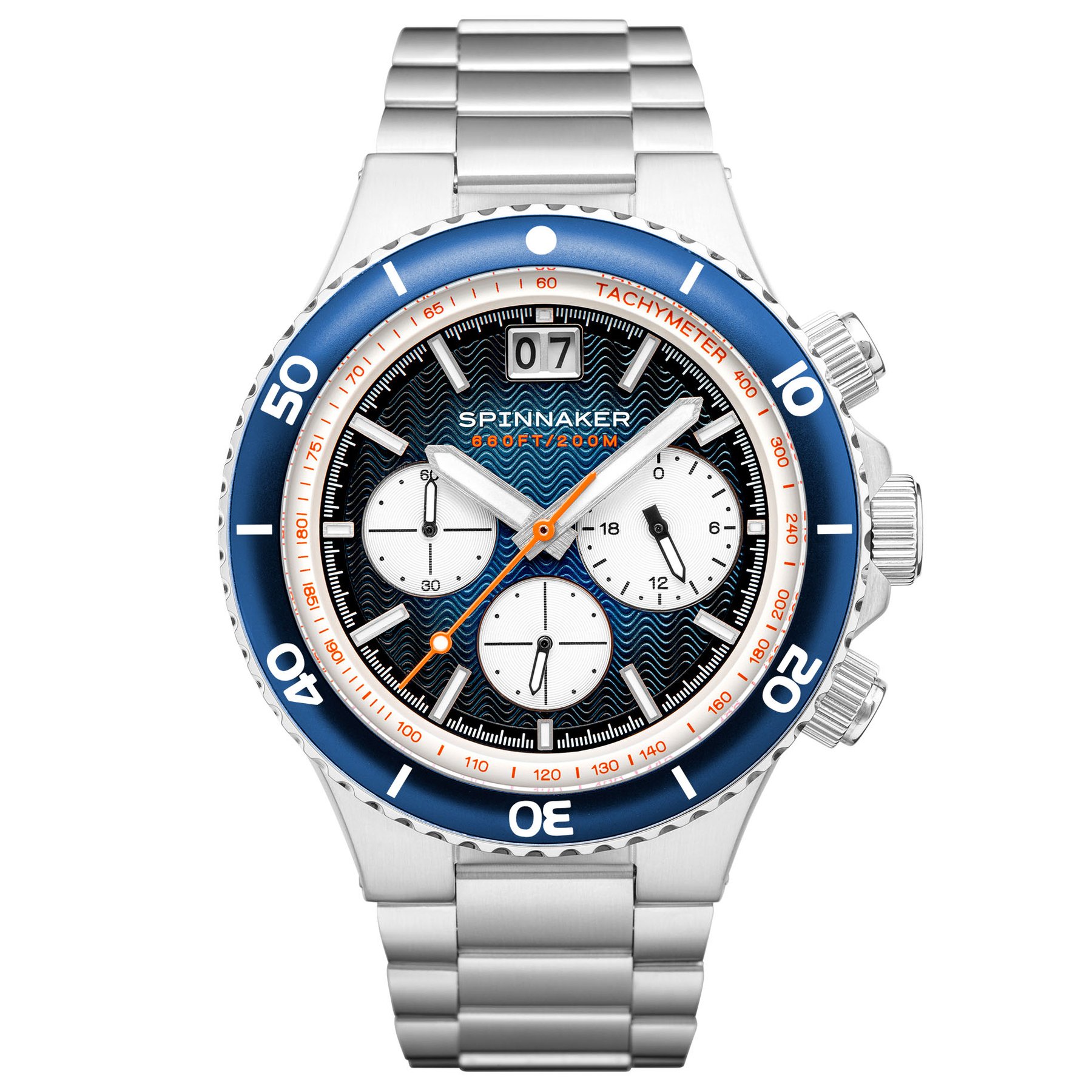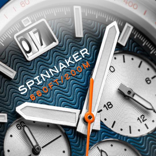 Spinnaker introduces a complete sports chronograph like no other. Following a modern nautical design code, the Hydrofoil is a sleekly-shaped timepiece built for strength and reliability.