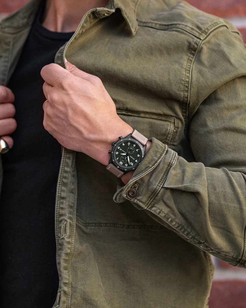 DESCRIPTIONEvery aspect of this watch was made to go the distance. Our pilot watch will withstand whatever you throw at it and take you wherever you want to go.