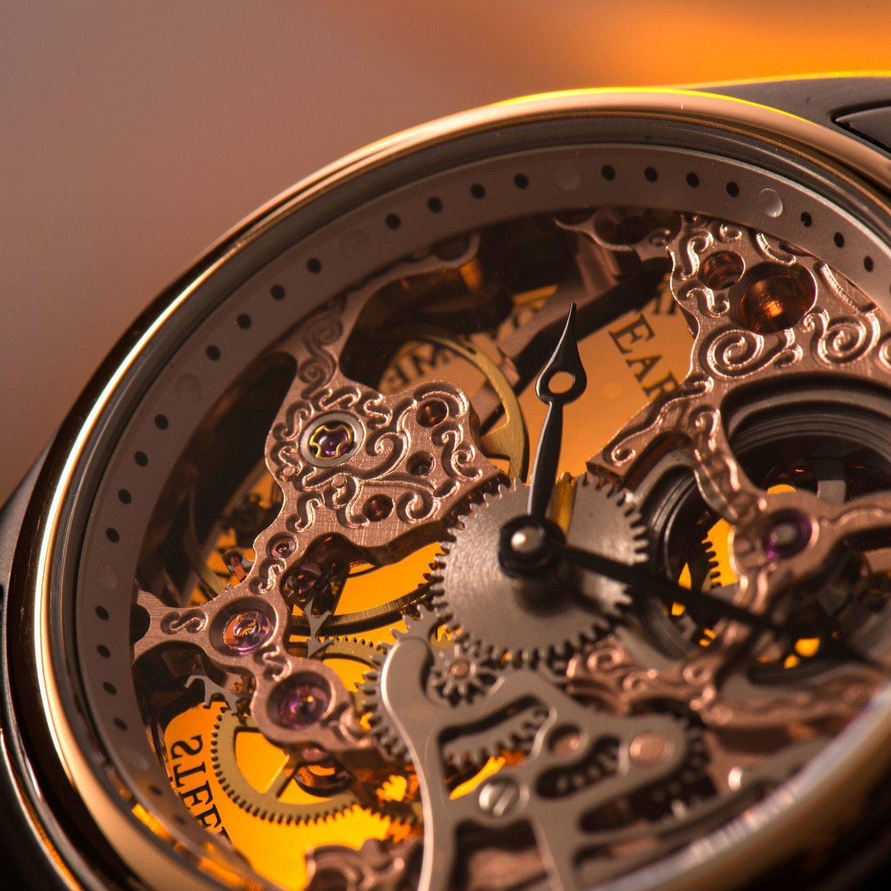 This range of mechanical timepieces created in tribute is no less stunning and intricate in their detail and workmanship. A fluid round case with an exhibition caseback has but slimmest frame to mark out the minutes exposing the full glory of the complex and beautifully machined individual parts that create this stunning timepiece from Earnshaw.